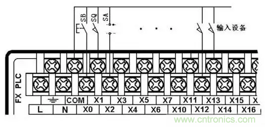 圖1:PLC與主令電器類輸入設備的連接