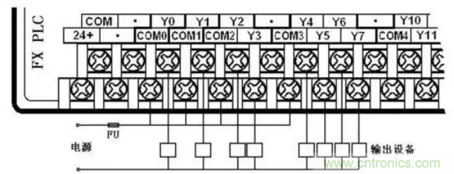 5、PLC與輸出設備開關的連接