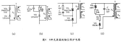 漏極鉗位保護電路主要有以下4種設計方案(電路參見圖4):