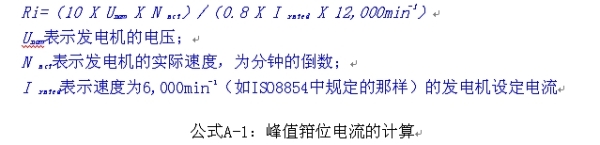 負(fù)載突降狀態(tài)的額定功率是由內(nèi)阻表示的,由該公式得到了一個發(fā)電機(jī)的內(nèi)阻,如公式A-1所示。