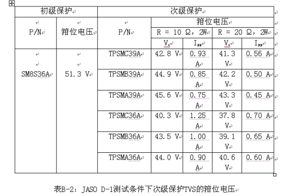 在24 V測試條件下,初級保護(hù)TVS的擊穿電壓如表B-1所示。這些將導(dǎo)致在穩(wěn)壓器、儀表總成集成電路和其他電子設(shè)備上出現(xiàn)高電壓。