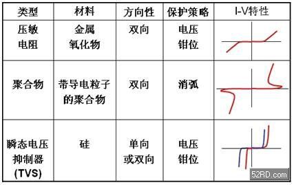 表1:常見ESD保護元件分類