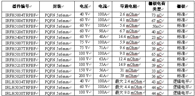 國際整流器公司 (International Rectifier,簡稱 IR) 拓展了 HEXFET功率 MOSFET 產(chǎn)品組合,提供完整的中壓器件系列,它們采用了5x6 mm PQFN封裝及優(yōu)化銅夾和焊接芯片技術。