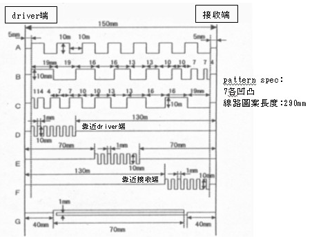 必需注意的是包含編號G的線路圖案再內,線路圖案的「物理長度」物理長度皆為290mm