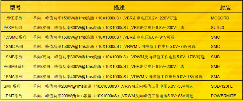 瞬態(tài)電壓抑制器(TVS):是基于雪崩二極管和穩(wěn)壓二極管。單一的二極管本質(zhì)上是單向的鉗位設備。