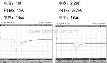 1、電容增大,由于ESR和容量的共同影響,導致開機脈沖Peak增大,脈沖寬度也增加