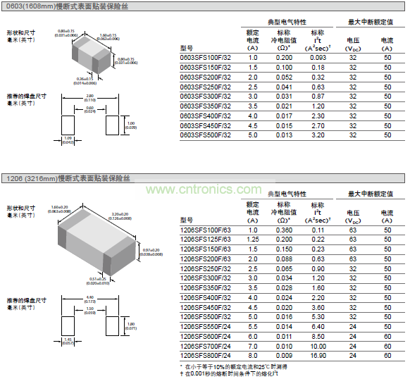 慢斷式保險絲的單片多層設計有助于以1206或0603尺寸提供多種大電流額定值,同時提高各種電路保護設計的高溫性能。其體積小、高可靠性和強大的電弧抑制特性適用于對電源保護、電容濾波器組、LCD(液晶顯示器)背光轉換器、電動機和便攜式電子產品提供過電流保護。