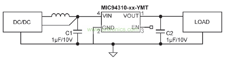 Micrel Semiconductor MIC94300 集成的負載開關和 MIC94310 DC/DC 低壓降穩壓器采用了 Micrel的 Ripple Blocker™ 有源過濾技術,為敏感的下游電路不能忍受開關噪音的應用提供高頻紋波衰減(開關噪音抑制)。