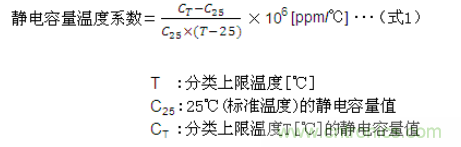 (1)一種是在公共標(biāo)準(zhǔn)中被歸類于種類Ⅰ (Class1)的溫度補(bǔ)償用獨(dú)石陶瓷電容器中,使用了二氧化鈦與鋯酸鈣類電介質(zhì)材料,其靜電容量對(duì)溫度幾乎呈現(xiàn)直線性變化。將溫度發(fā)生的變化稱為溫度系 數(shù),其數(shù)值以每1℃的百萬(wàn)分之一作為單位(ppm/℃)表示。溫度系數(shù)根據(jù)基準(zhǔn)溫度(IEC,JIS標(biāo)準(zhǔn)中為20℃,EIA標(biāo)準(zhǔn)中為25℃,此處以25℃ 為基準(zhǔn))中的靜電容量值C25與分類上限溫度(最高使用溫度:設(shè)計(jì)上可連續(xù)使用電容器的最高環(huán)境溫度)中的靜電容量值CT定義得出。