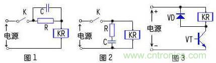 KR在VT導通時,上面電壓為上正下負,電流方向由上向下。在VT關斷時會,KR中電流突然中斷,會產生感應電勢,其方向是力圖保持電流不變,即總想保持KR電流方向為由下至下。這個感應電勢與電源電壓迭加后加在VT兩端,容易使VT出穿。為此加上VD,將KR產生的感應電勢短路掉,電注是你所說的“順時針方向在二極管和繼電器所的小回路里面流動”,從而保護VT。圖2中的R、C也是利用C上電壓不能突變的原理,來吸收感應電勢。(VT三級管,KR繼電器,VD續流二極管)