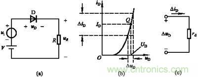 圖(a)電路(b)二極管伏安特性(c)二極管的動態電阻