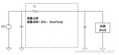 圖1. 線性穩(wěn)壓器框圖。注意,旁路元件將在其自身和負荷之間形成一個分壓器,起到耗散功率的作用。