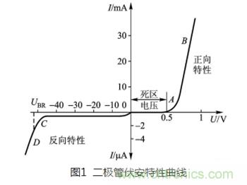 提到二極管,大家最熟悉的就是二極管的單向?qū)щ娦裕从撤睬€上如圖1所示。當(dāng)正向偏壓U=0.5V(硅管)時,二極管開始導(dǎo)通,電流越大電壓越大,具有很低阻抗;當(dāng)加反向偏壓時二極管不導(dǎo)通,在一定范圍內(nèi)有很小的漏電流,具有很大阻抗。其這個單向?qū)щ娦裕财鸬搅碎_關(guān)的作用,所以在整流和開關(guān)方面都有廣泛的應(yīng)用。