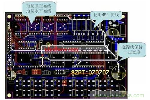 總的連線盡可能短,關鍵信號線最短;高電壓、大電流信號與小電流,低電壓的弱信號完全分開;模擬信號與數字信號分開;高頻信號與低頻信號分開;高頻元器件的間隔要充分。