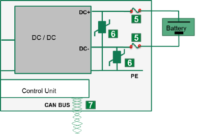 4.高壓直流側過電流保護:有助于消除由于 OCB 或電池組中的故障或交通事故等外部事件造成的短路危險。