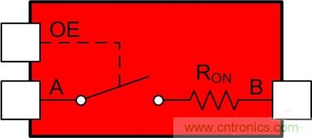 通過(guò)輸出使能引腳 (OE),用電壓來(lái)控制這個(gè)開關(guān);只需在高電平關(guān)閉開關(guān),在低電平時(shí)打開開關(guān)。(對(duì)于低電平有效OE引腳來(lái)說(shuō),恰恰相反;這些引腳上通常會(huì)有標(biāo)簽進(jìn)行標(biāo)注。)RON 是開關(guān)的內(nèi)部電阻。A和B到開關(guān)的兩個(gè)連接點(diǎn)。