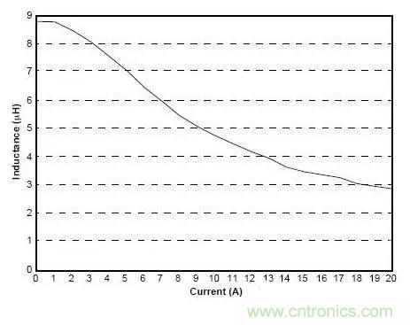 有了這個軟飽和的特性,我們就可以知道在所有的轉換器中為什么都會規定在DC輸出電流下的最小電感量;而且由于紋波電流的變化也不會嚴重影響電感量。在所有 的應用中都希望紋波電流盡量的小,因為它會影響輸出電壓的紋波。這也就是為什么大家總是很關心DC輸出電流下的電感量,而會在Spec中忽略紋波電流下的電感量。