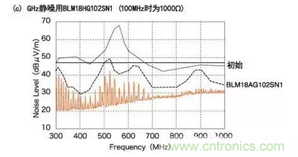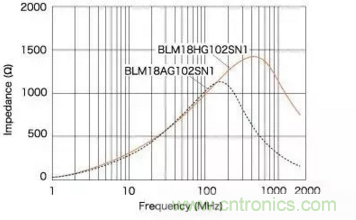 傳統(tǒng)型BLM18AG對300MHz和700MHz之間頻率范圍內的噪聲抑制十分有效。