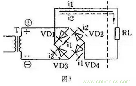像我們ASEMI的整流橋一般情況下也都是全波橋式整流,全波橋式整流用的是4個(gè)二極管組成的橋式電路,這種電路只能有單個(gè)次級線圈的變壓器。見圖3,負(fù)載上的電流波形和輸出電壓值與第二種全波整流電路是完全相同的。