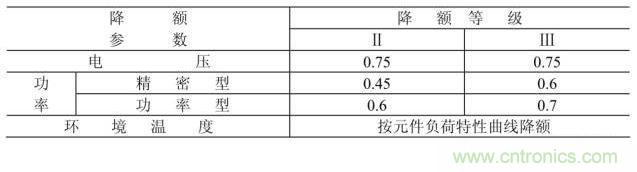 合成型電阻器的降額準則見下表。