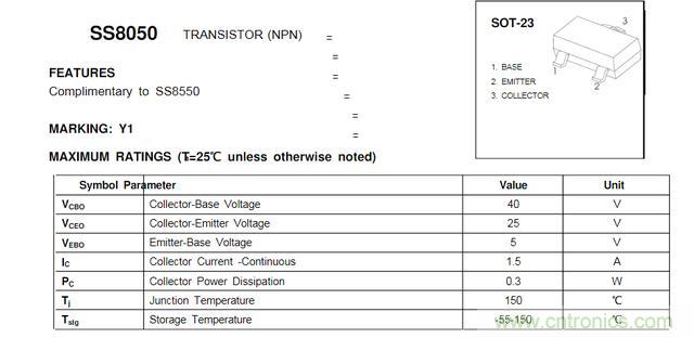 最大耐壓Vceo=25V,足夠應用于5V供電系統中;最大集電極電流Ic=1.5A,足夠我們的LED燈使用。