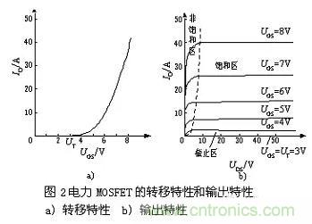 MOSFET的漏極伏安特性(輸出特性):截止區(對應于GTR的截止區);飽和區(對應于GTR的放大區);非飽和區(對應于GTR的飽和區)。電力 MOSFET工作在開關狀態,即在截止區和非飽和區之間來回轉換。電力MOSFET漏源極之間有寄生二極管,漏源極間加反向電壓時器件導通。電力 MOSFET的通態電阻具有正溫度系數,對器件并聯時的均流有利。