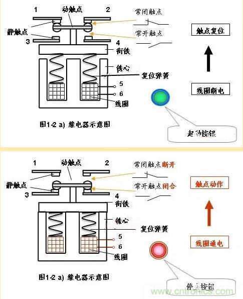 中間繼電器就是個繼電器,都是由固定鐵芯、動鐵芯、彈簧、動觸點、靜觸點、線圈、接線端子和外殼組成。線圈通電,動鐵芯在電磁力作用下動作吸合,帶動動觸點動作,使常閉觸點分開,常開觸點閉合;線圈斷電,動鐵芯在彈簧的作用下帶動動觸點復位。