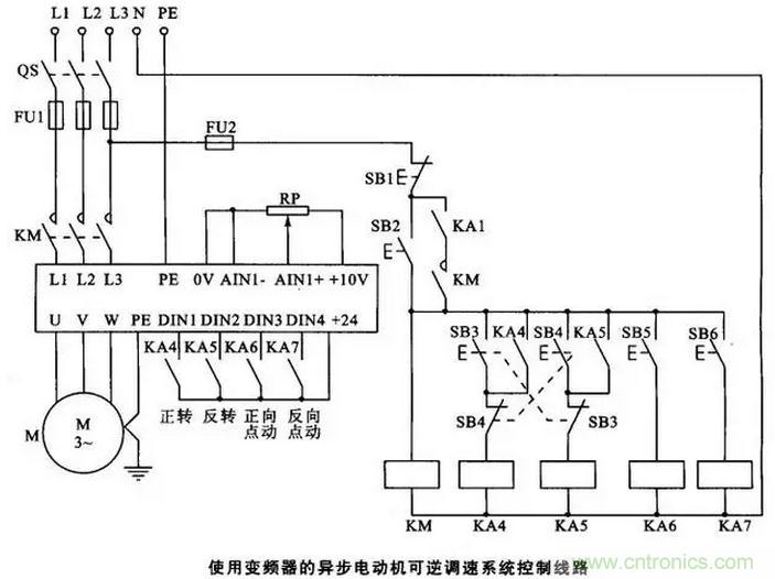 25. 使用變頻器的異步電動機可逆調速系統控制線路
