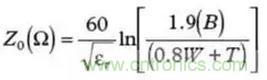 公式(6)可以用于計算一塊FR4板的特征阻抗。