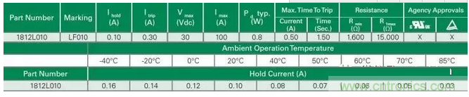 選用PTC的時候,首先要考慮設(shè)計工作電流,不能超過PTC保持電流,此時PTC可以保持低阻抗?fàn)顟B(tài)。PTC的保持電流會隨著工作溫度的升高而降低,因此,工作溫度時需要考慮的重要因素。