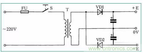圖中的黑圓點表示繞組的同名端。如果將初、次級的連接線改為同名端相連;則輸出電壓將降低6.3V。采用這種接法;負載電流不得大于初、次級的額定電流。網路電壓如經常比220V低(或高)30~40V;可選220V/36V的變壓器連接。