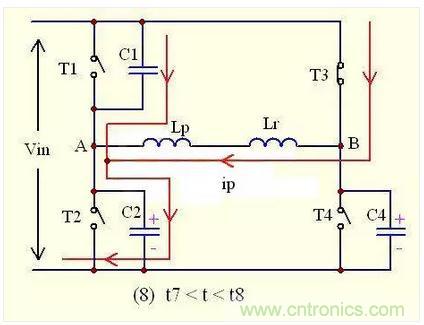 第4、8種工作模式分別是滯后臂與超前臂的諧振模式,稍后上詳細(xì)的分析過程