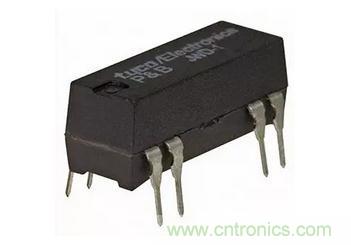 舉例來說,TE Connectivity的JWD-171-10磁簧繼電器有一個集成吸收器二極管的24V線圈,以及一個常開觸頭,其在20V時的額定最大切換電流為500mA。JWD系列磁簧繼電器設計安裝在電路板上,基底面與14引腳DIP集成電路相同,不過只有8個引腳(圖1)。