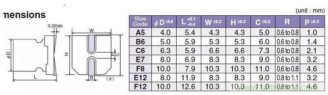 固態電容的封裝尺寸