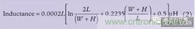 帶狀電感是另外一種需要考慮的寄生效應,它是由于印制線過長或缺乏接地平面引起的。(公式二)顯示出計算印制線電感(Inductance)的公式。可參考(圖六)。