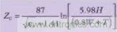 (公式六)可以用于計算一塊FR4板的特徵阻抗。