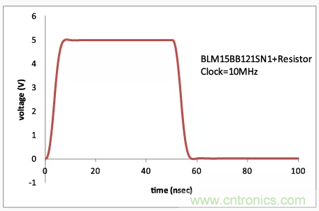 如果在數字電路中使用鐵氧體磁珠,則可能會發生波形中出現過沖和下沖的情況。(圖2)