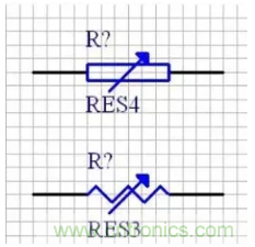 可以選用“RES1”、“RES2”、“RES3”、“RES4”中任何一個,對應(yīng)的電阻封裝為AXIAL系列,比如“AXIAL-0.3”到“AXIAL-0.7”,其中0.4和0.7指電阻封裝的焊盤間距,一般用“AXIAL0.4”封裝。
