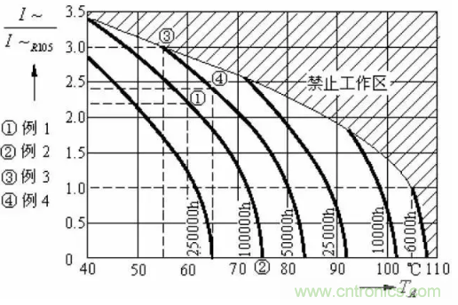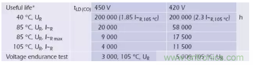溫度、電壓、紋波電流共同作用對壽命的影響。以某電子鎮流器用鋁電解電容器為例。在不同的電壓與溫度條件下的鋁電解電容器壽命不同。