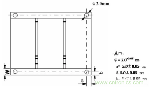 在拼板外框的四角開出四個定位孔,孔徑4mm±0.01mm;孔的強度要適中,保證在上下板過程中不會斷裂;孔徑及位置精度要高,孔壁光滑無毛刺。