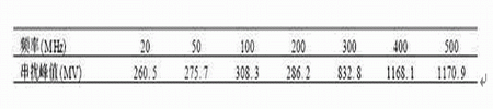 表2 干擾源頻率取不同值時的串擾峰值