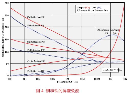 發(fā)射和敏感度問題的頻率低于100kHz 就意味著這是一個(gè)磁場(chǎng)(HF)耦合問題。在這種情況下,屏蔽效能主要取決于殼體材料的類型。不管材料如何選擇,首先必須決定最高頻率情況下對(duì)屏蔽效能(SE)的要求,然后加上適當(dāng)?shù)碾姶偶嫒菰A俊?br /> 然后,假設(shè)使用的是一種便宜的導(dǎo)磁材料,通過令其吸收損耗(A)= SE+EMCSM 來計(jì)算其所需的厚度(t)。