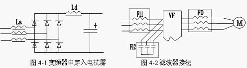 (1)線路濾波器:主要由電感線圈構(gòu)成(如圖4-2中F11所示)。它主要通過增大線路在高頻下的阻抗來削弱頻率較高的諧波電流。
