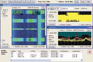 隨著通信系統的干擾特點發生變化,測試設備也在變化。模擬電路以前實現的功能,現在可以以數字方式實現,測量速度不斷提高,我們可以更快地獲得測量結果。泰克公司推出的實時頻譜分析儀可以即時查看非常寬的頻譜跨度,而不會丟失頻段中的信息,從而可以發現、捕獲并測量對傳統技術極具挑戰性的瞬態峰值。