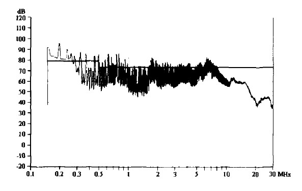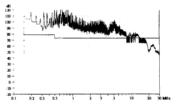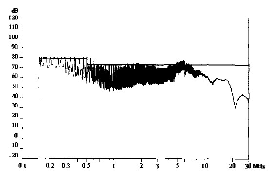 圖1未加任何抑制措施所測(cè)得的傳導(dǎo)騷擾