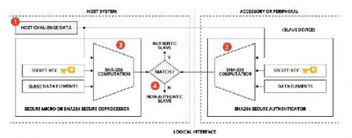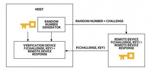 圖1. 基于對稱加密的安全認證依賴于主機和設備之間的共享密鑰。