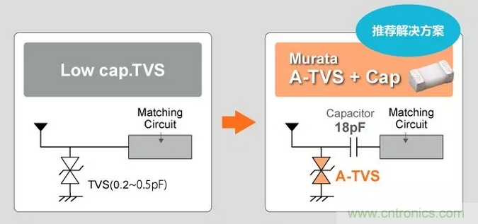 因此,不會產生諧波噪聲的村田的A-TVS(LXES**A系列)可以說更加適用于RF天線的ESD保護方案。