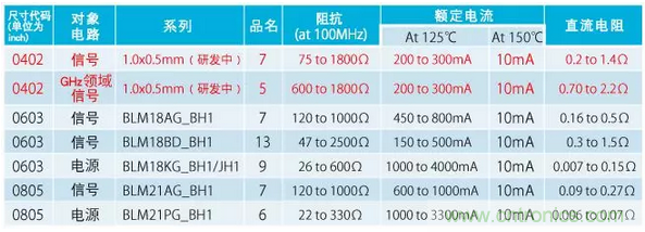 1) 高溫保證片狀鐵氧體磁珠的產(chǎn)品陣容