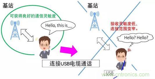 當(dāng)此噪聲進(jìn)入智能手機(jī)的天線時,混雜著來自基站的無線電波的噪聲,使接收靈敏度降低。