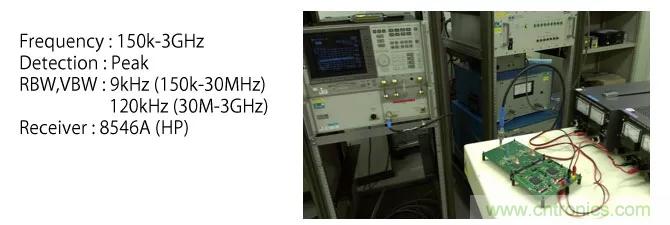 通過輻射噪聲測定確認了共模扼流圈的降噪效果。